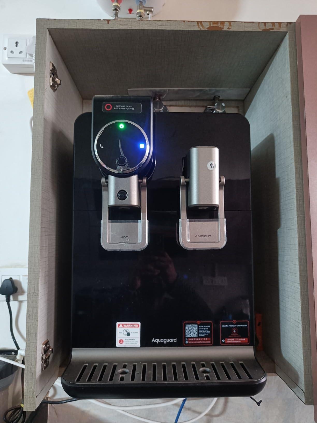 Aquaguard Blaze Insta WS Hot & AMB 5.6 L RO + UV + Copper Water Purifier | Dual Stainless Steel Tank | Instant Hot Water | Dual Dispense Technology | 9-Stage Purification | Child Lock | Removable Drip Trip | Suitable for all - Borewell, Tanker, Muncipal